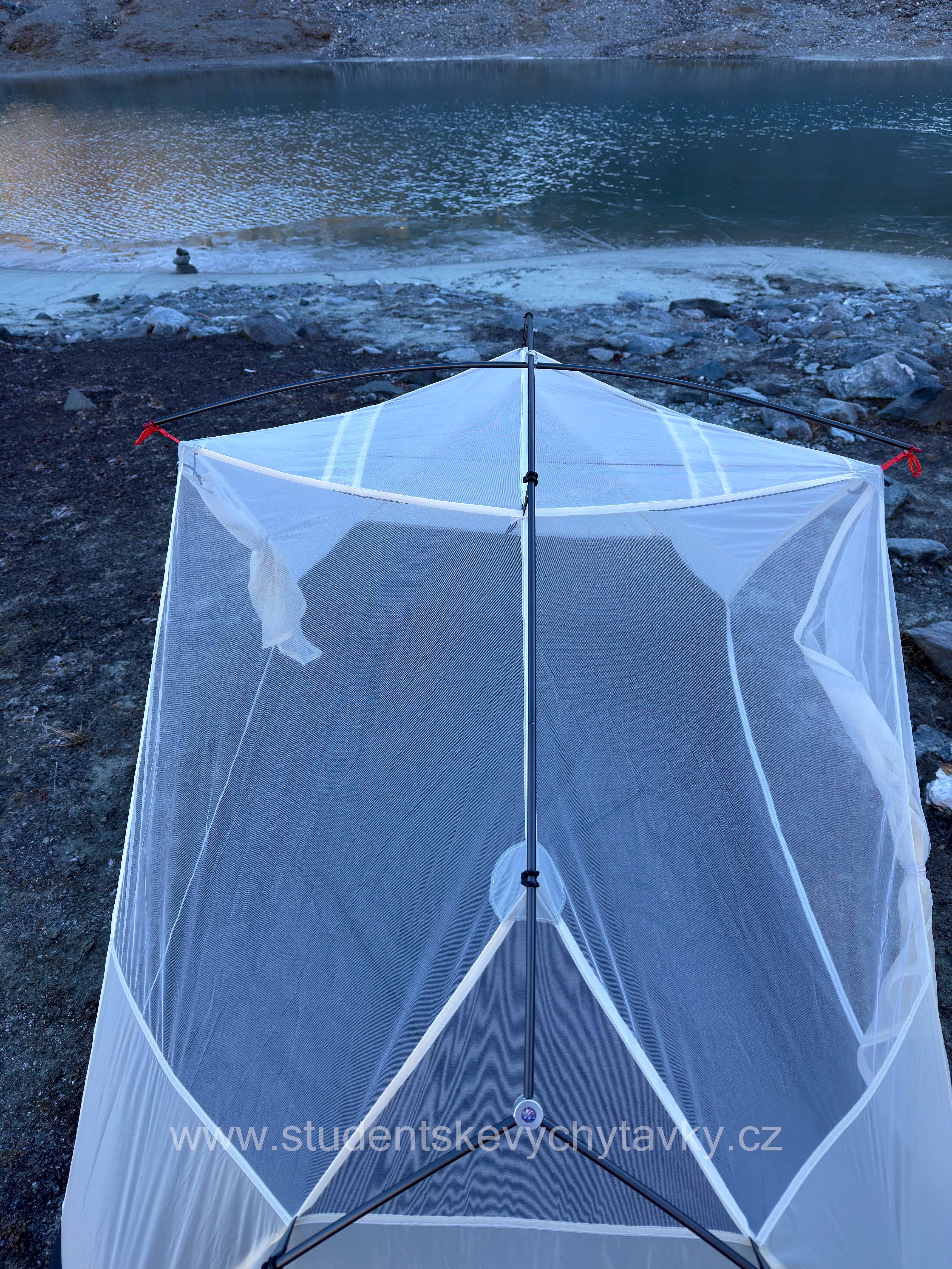 - Odlehčená vnější plachta i vnitřní ložnice, přesto plná voděodolnost i do horské bouřky.