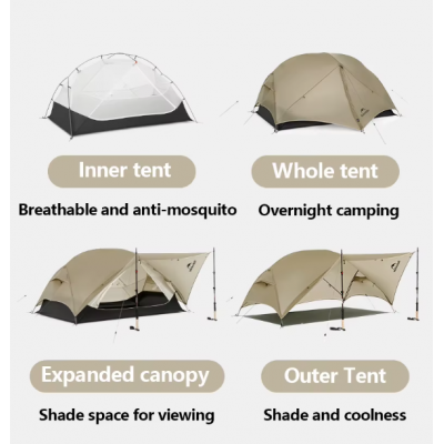 Naturehike Mongar 2 15D Ultralehký expediční stan pro dvě osoby - Pískový